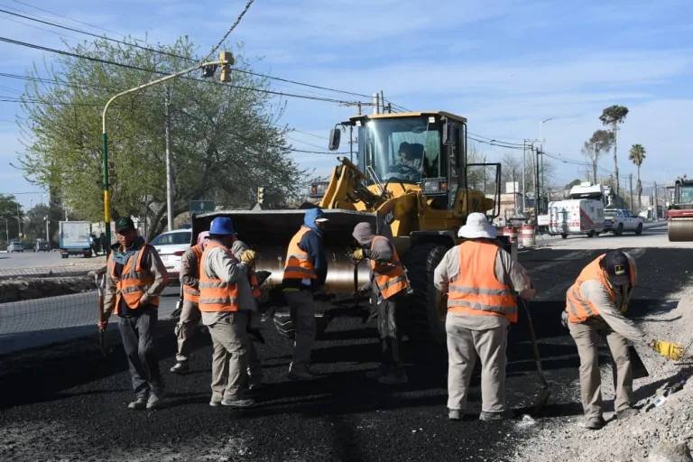 Actualmente se trabaja en dos frentes distintos; en la rotonda que se conecta con la ruta 21, camino a San Agustín, se procedió al graneo, riego de liga y base negra para la colocación del nuevo pavimento. En tanto que, en la zona de la rotonda de ingreso al barrio Santa Ana, se prepararon las armaduras para la construcción de la nueva losa de hormigón.